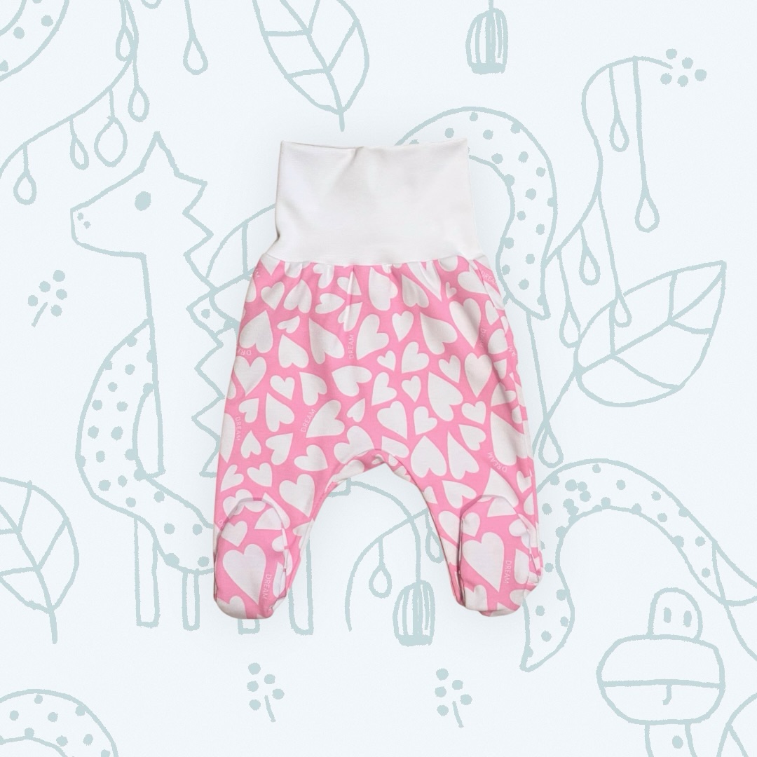 Kényelmes, pocakot nem szorító nadrág, nyomott mintával. Derekán széles, visszahajtható passzéval, lábán tappanccsal végződik. Alapanyag: 100% pamut interlock